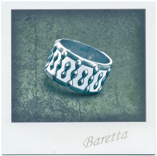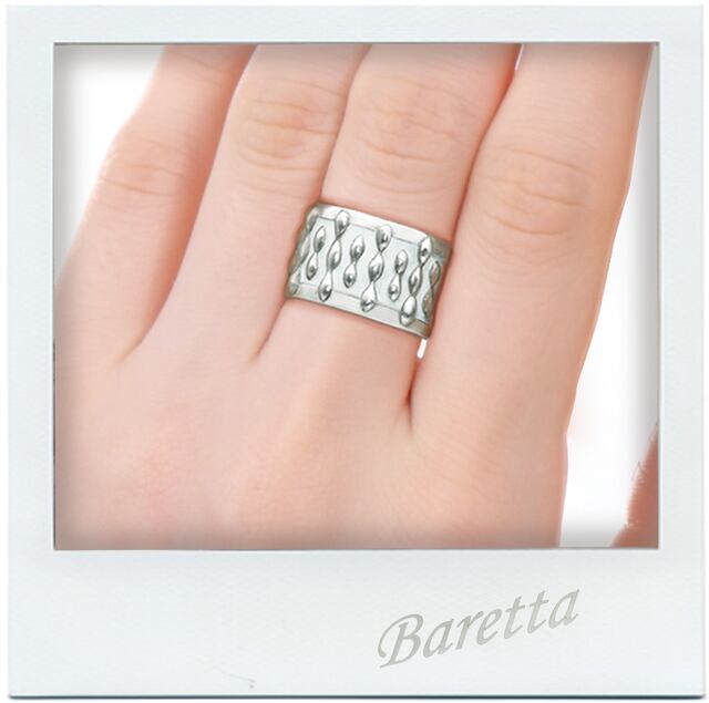 ・モダン・エレガンスをコンセプトにデザインしたリングです。シルバーに白の「加飾」を組み合わせたリングはあまり見かけないと思います。存在感のあるボリュームですが白色の加飾が他にはない上品さと爽快さを効果的に醸し出していると思います。