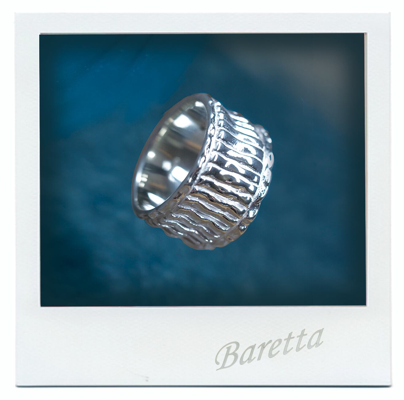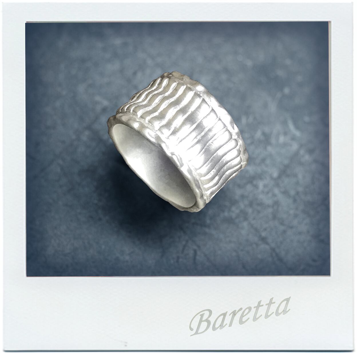・パルテノン神殿をコンセプトにデザインしたリングです。古代からの屈強な力強さと普遍性、女神アテーナを祀る神聖でありながら威厳と上品さを表現しました。段面は凹凸形状の歪みとスリットにより光が様々な方向に反射してキラキラと他にはない存在感を醸し出します。飽きのこない全体のフォルムは、「永く」身につけていただけると思います。